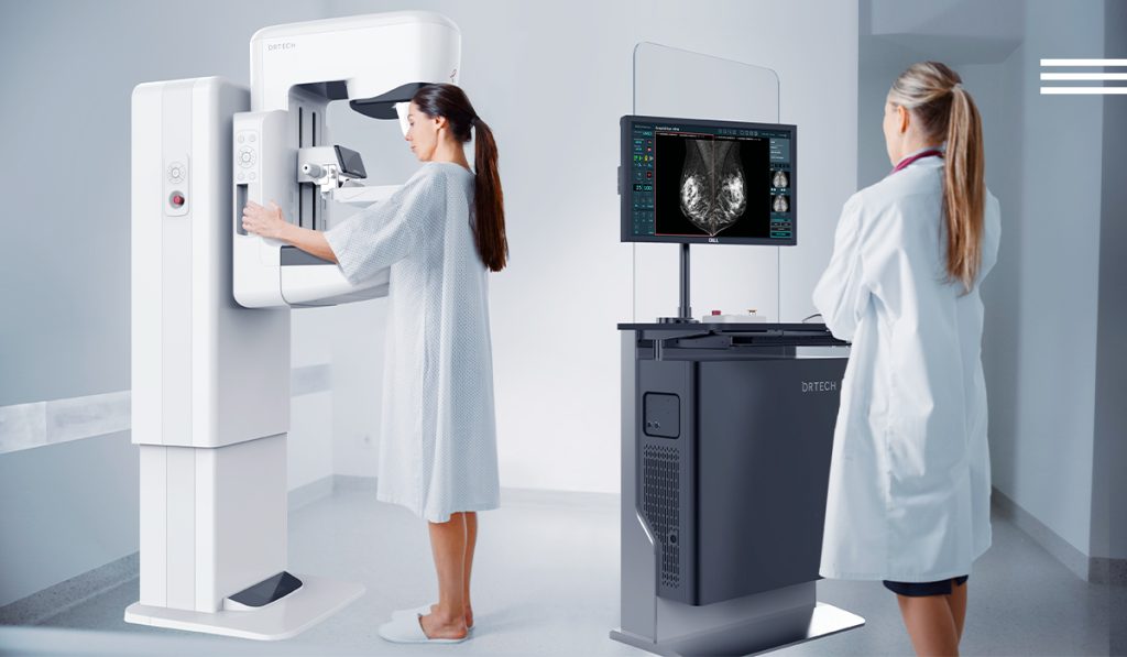 Imagina un mamógrafo que no solo captura imágenes, sino que transforma cada estudio en una experiencia excepcional. Con su avanzada tecnología de píxel ultra fino de 76μm y el revolucionario FOCUS CsI (Yoduro de Cesio Óptico Fluorescente), AIDIA NEX eleva la resolución de imagen a niveles extraordinarios, manteniendo una eficiencia de dosis cuántica (DQE) superior incluso en dosis mínimas.